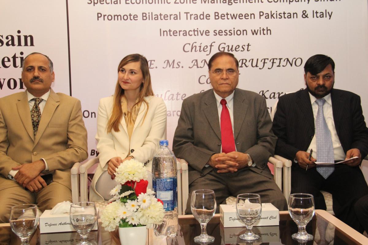Diplomatic Forum organized an interactive session to promote bilateral trade between Pakistan and Italy with H.E. MS. ANNA RUFFINO, Consul, Consulate of Italy in Karachi on 18th March 2019 at Sunset Club, DHA, Karachi in collaboration with Special Economic Zone Management Company, Investment Department, Government of Sindh. Mr. Abdul Azeem Uqaili, Chief Executive, SEZMC also consented to be the Guest of Honor for this ceremony. He promoted the SEZMC and other related projects of Investment Department, Government of Sindh. During his speech he said,
