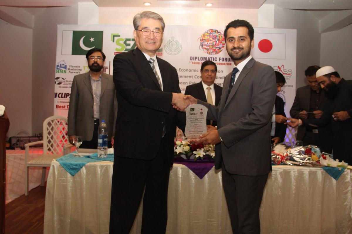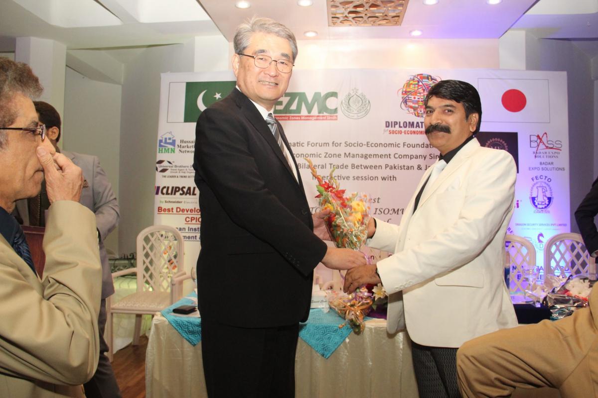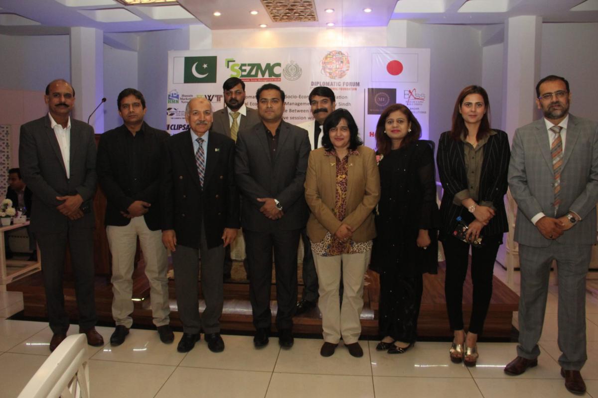 Diplomatic Forum organized an interactive session to promote bilateral trade between Pakistan and Japan with H.E. TOSHIKAZU ISOMURA, Consul General, Consulate General of the Japan in Karachi on 11th March, 2019 at DHA Sunset Club, Karachi in collaboration with Special Economic Zone Management Company, Investment Department, Government of Sindh. Mr. Abdul Azeem Uqaili, Chief Executive, SEZMC also consented to be the Guest of Honor for this ceremony. He promoted the SEZMC and other related projects of Investment Department, Government of Sindh. During his speech he said,