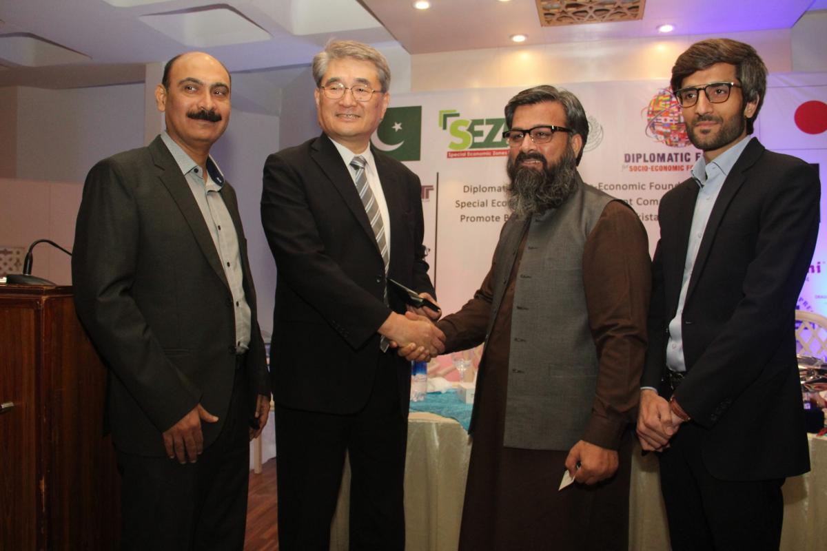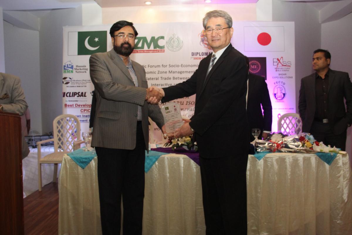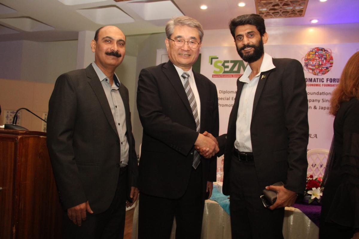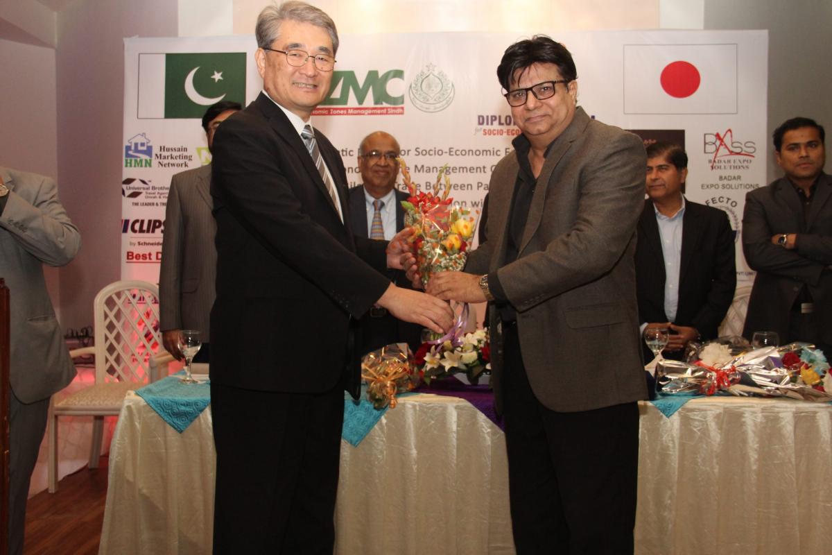 Diplomatic Forum organized an interactive session to promote bilateral trade between Pakistan and Japan with H.E. TOSHIKAZU ISOMURA, Consul General, Consulate General of the Japan in Karachi on 11th March, 2019 at DHA Sunset Club, Karachi in collaboration with Special Economic Zone Management Company, Investment Department, Government of Sindh. Mr. Abdul Azeem Uqaili, Chief Executive, SEZMC also consented to be the Guest of Honor for this ceremony. He promoted the SEZMC and other related projects of Investment Department, Government of Sindh. During his speech he said,