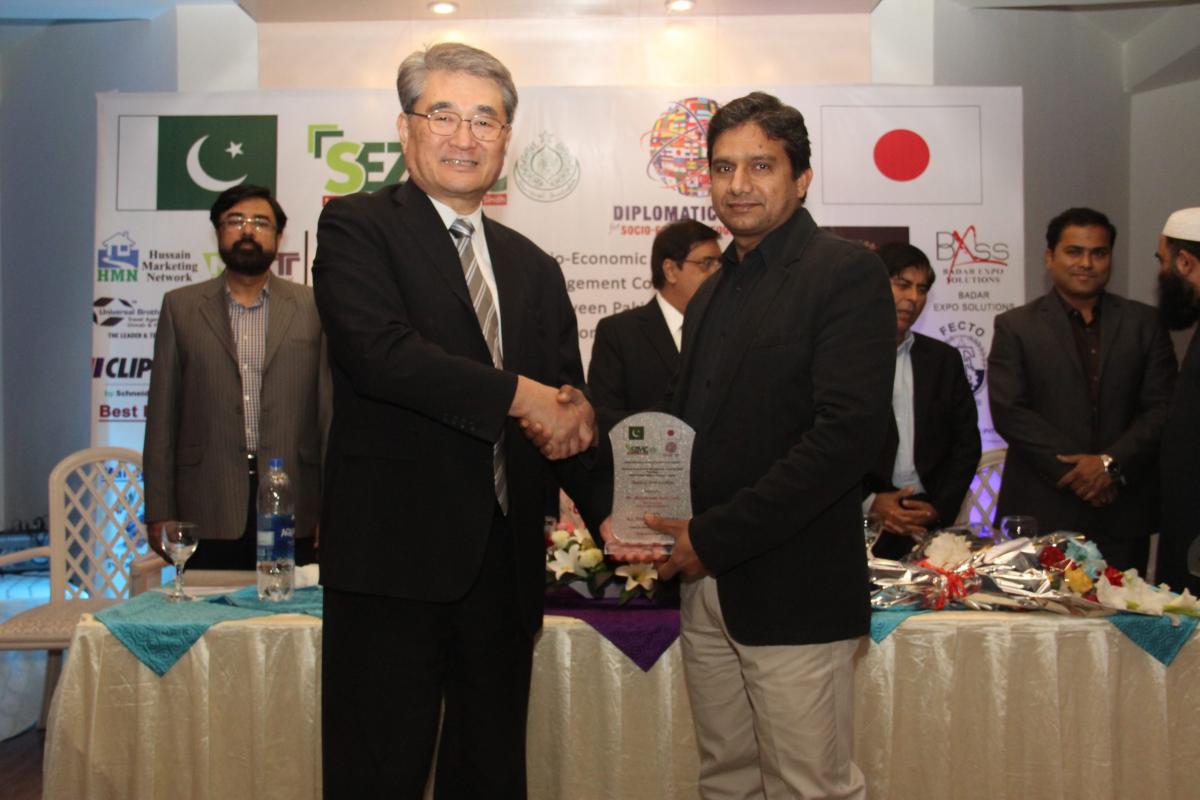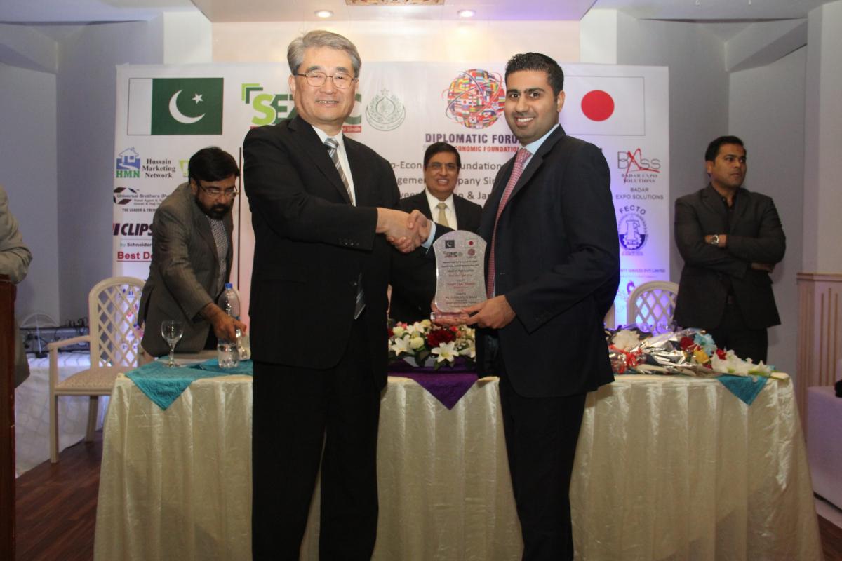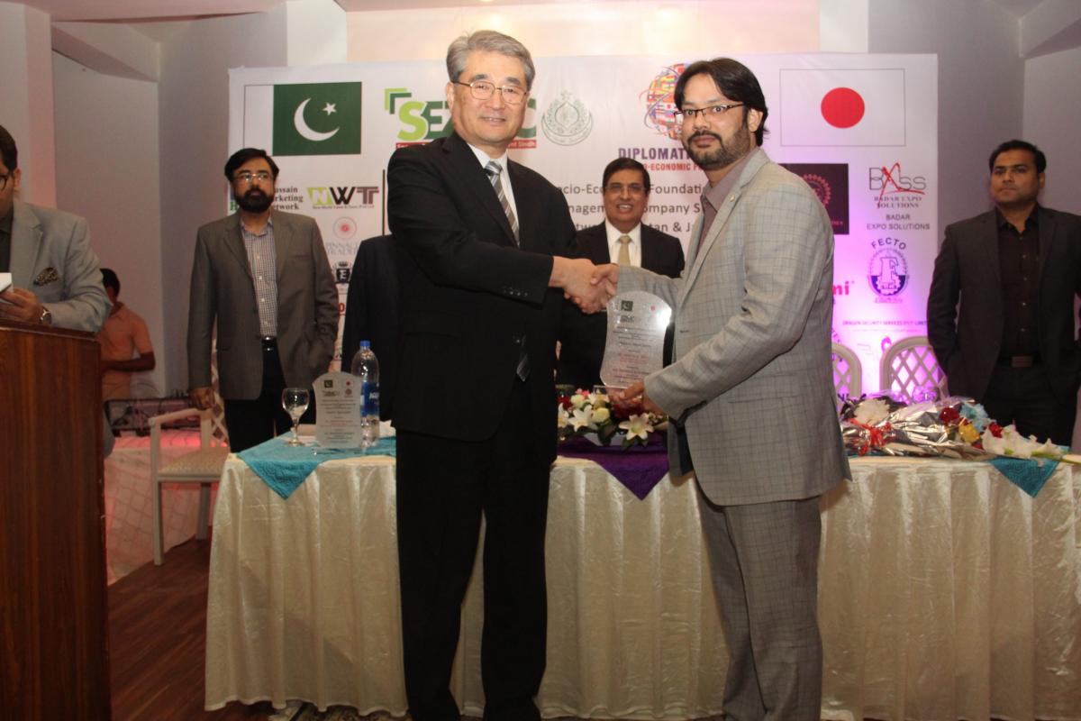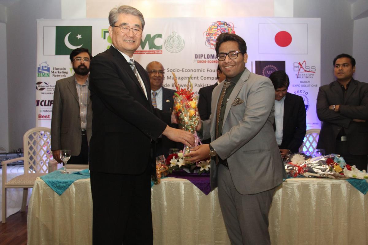 In his speech, he said “Pakistan & Japan has strong bilateral relations since very long. In 1952 Japanese first came to Pakistan for bilateral trade and since then our trade has been increasing every year. We have worked in various companies mainly in the automobile industry in Pakistan. In 2017, Japan’s trade to Pakistan were 292 Million USD on the other hand Pakistan’s trade to Japan were 220 Million USD and these numbers are increasing day by day. With all this there is still a lot of gap that we both need to fill. Fish industry and Automobile industry are the main industries where Pakistan and Japan can work together.”